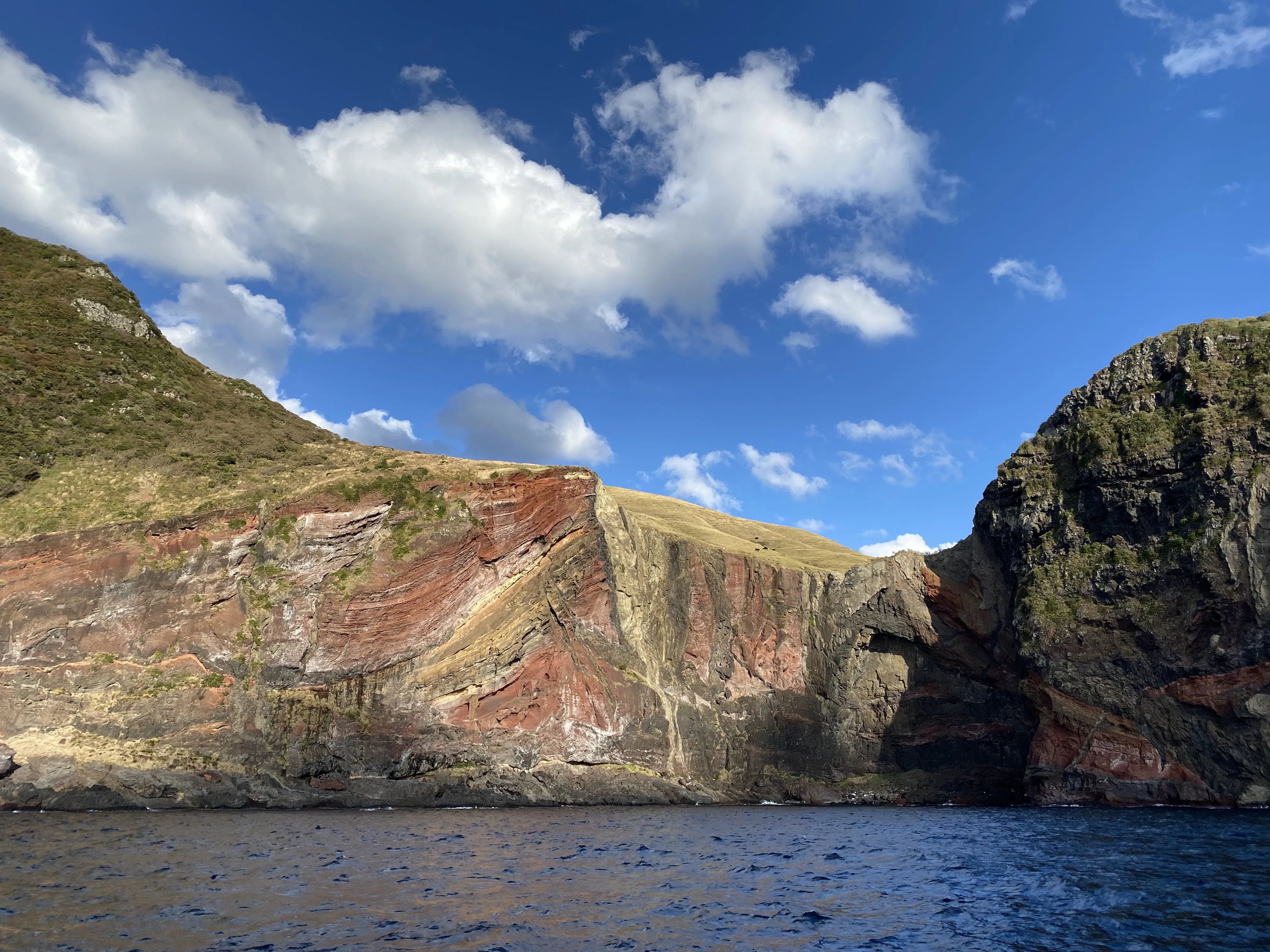 陸地からは見られない、特別な角度から赤壁を堪能する遊覧船ツアー。600万年の時が創り上げた断崖絶壁の造形美を、夕陽に染まる神秘的な姿で間近に感じられます。お支払いには、『おき旅コイン』をご利用いただけます。