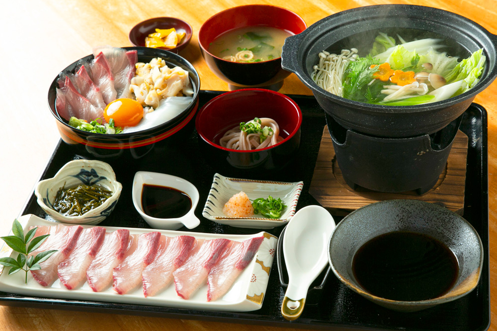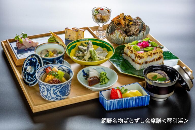 温かいもてなしが嬉しい、丹後の郷土料理を中心とした老舗へ。特に鯖の「おぼろ」を使った郷土寿司「ばらずし御膳」は必食です。旬の地魚や山菜を使った会席料理も楽しめます。お食事に『海の京都コイン』をご利用いただけます。