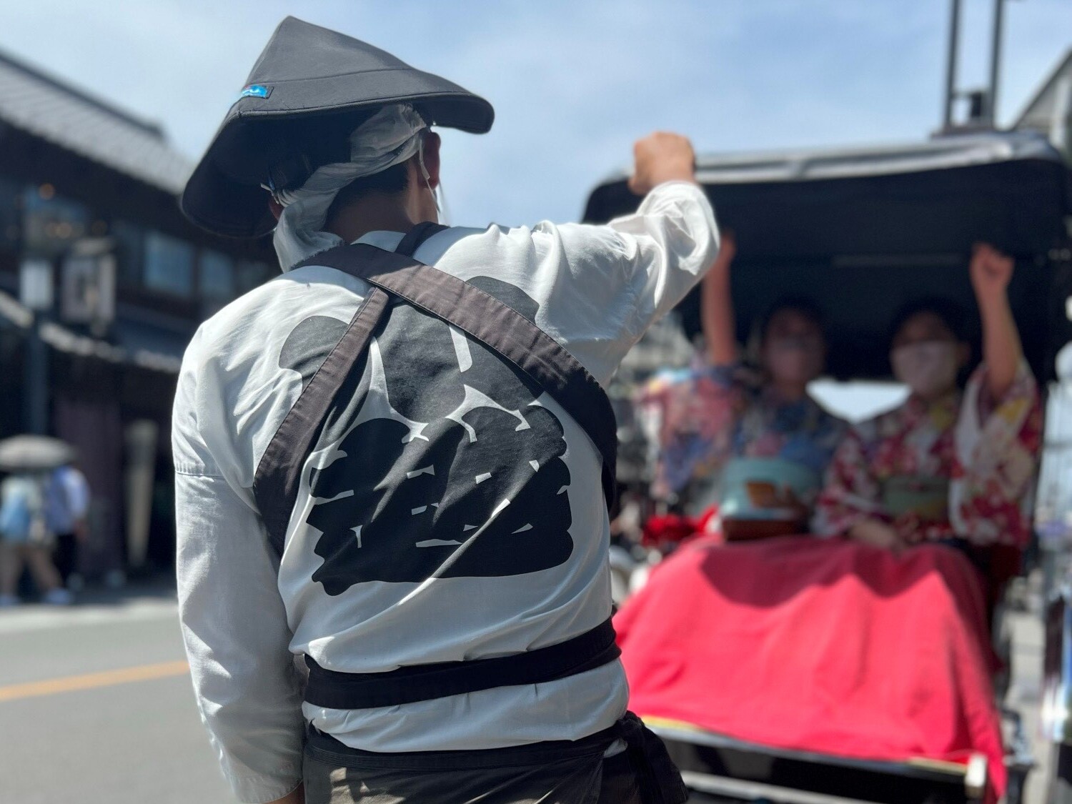 人力車に乗って、優雅に川越観光はいかがでしょうか。蔵造りの町並みだけでなく、神社仏閣や観光スポットを丁寧にガイドしてくれます。特別な旅の思い出を作りたい方におすすめです。人力車の乗車料金に、『小江戸かわごえe旅ギフト』をご利用いただけます。