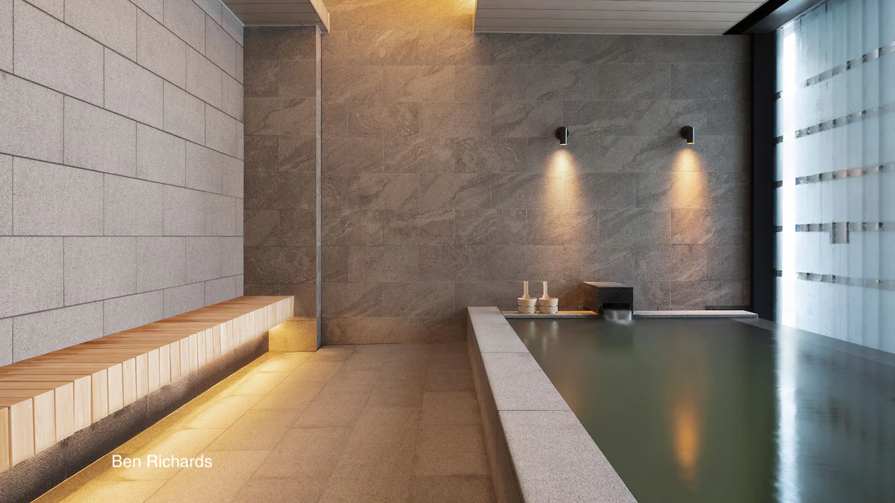 【温泉で疲労回復!雪見リラックスタイム】 終日滑りきった体を癒す至福のスパタイム。パークハイアット内の温泉に浸かり、雪景色を眺めながら心身ともにリラックスします。疲れを翌日に残さないための温泉利用にも「俱知安e街ギフトKU-KURU」をご利用いただけます。